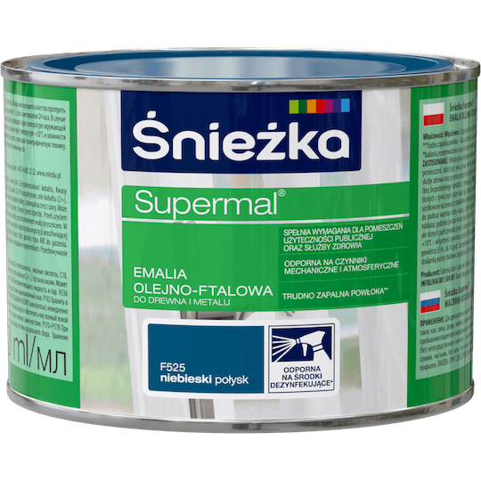 SUPERMAL® Emalia olejno-ftalowa stosowana jest do dekoracyjno-ochronnego malowania drewna, materiałów drewnopochodnych, tynków oraz elementów stalowych i żeliwnych użytkowanych wewnątrz i na zewnątrz pomieszczeń, takich jak: okna, drzwi, meble, ogrodzenia, lamperie itp. Polecana do stosowania w pomieszczeniach mieszkalnych, przeznaczonych na stały pobyt chorych w budynkach służby zdrowia oraz przeznaczonych na stały pobyt dzieci i młodzieży w budynkach oświaty, a także w pomieszczeniach przeznaczonych do przechowywania produktów żywnościowych (bez bezpośredniego kontaktu z żywnością).