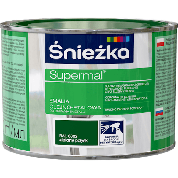 SUPERMAL® Emalia olejno-ftalowa stosowana jest do dekoracyjno-ochronnego malowania drewna, materiałów drewnopochodnych, tynków oraz elementów stalowych i żeliwnych użytkowanych wewnątrz i na zewnątrz pomieszczeń, takich jak: okna, drzwi, meble, ogrodzenia, lamperie itp. Polecana do stosowania w pomieszczeniach mieszkalnych, przeznaczonych na stały pobyt chorych w budynkach służby zdrowia oraz przeznaczonych na stały pobyt dzieci i młodzieży w budynkach oświaty, a także w pomieszczeniach przeznaczonych do przechowywania produktów żywnościowych (bez bezpośredniego kontaktu z żywnością).
